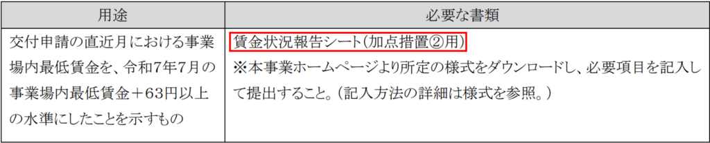 新加点②:「交付申請の直近月における事業場内最低賃金を、令和7年7月の事業場内最低賃金+63円以上の水準にしている事業者」