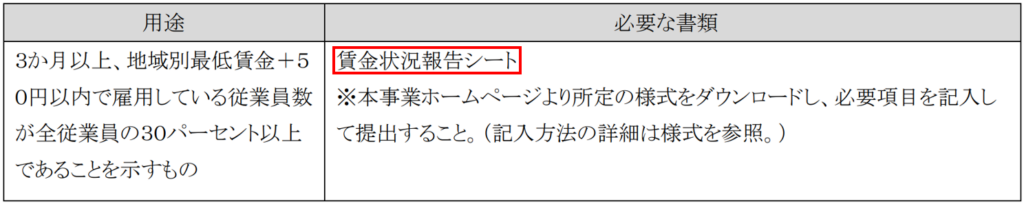 補助率2/3要件の変更・加点の追加に伴い、交付申請時の際に提出する賃金状況報告シートの様式が増えました。