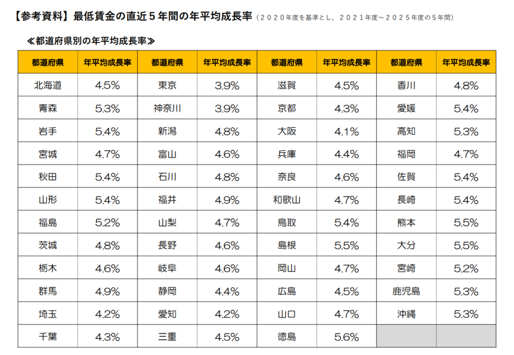 しかし、第4回公募の際に公表された最低賃金の過去5年間の年平均成長率のデータによると、必ずしも無理な数字とは言えない側面もあります。